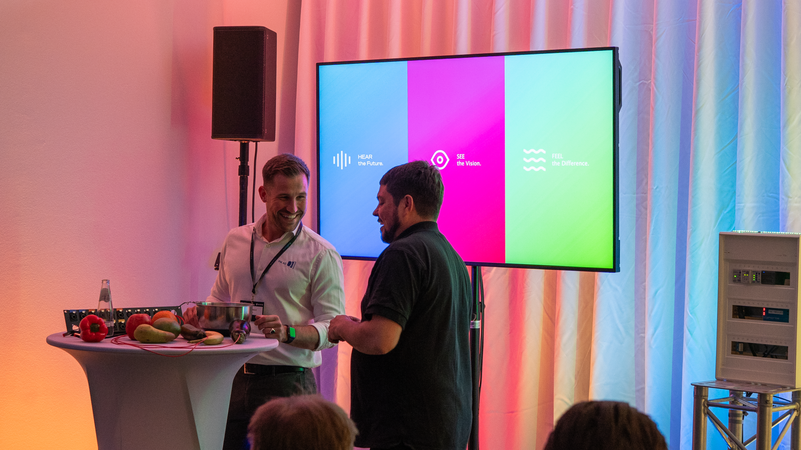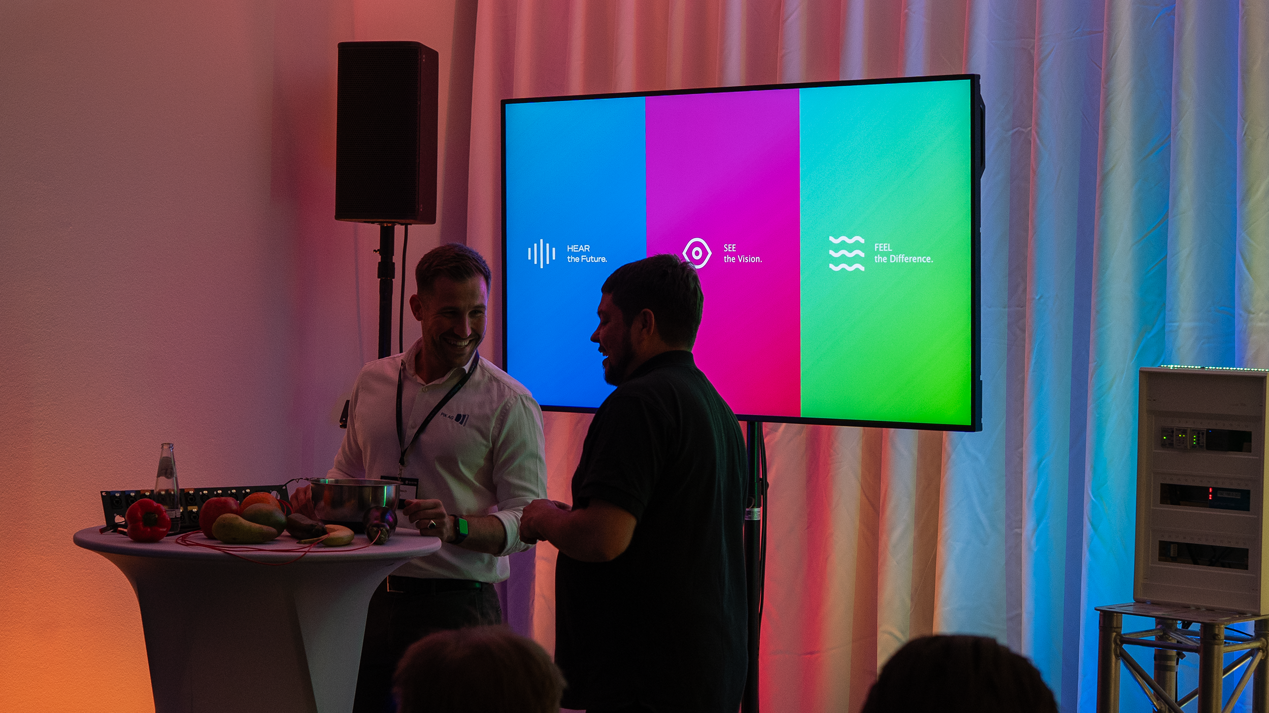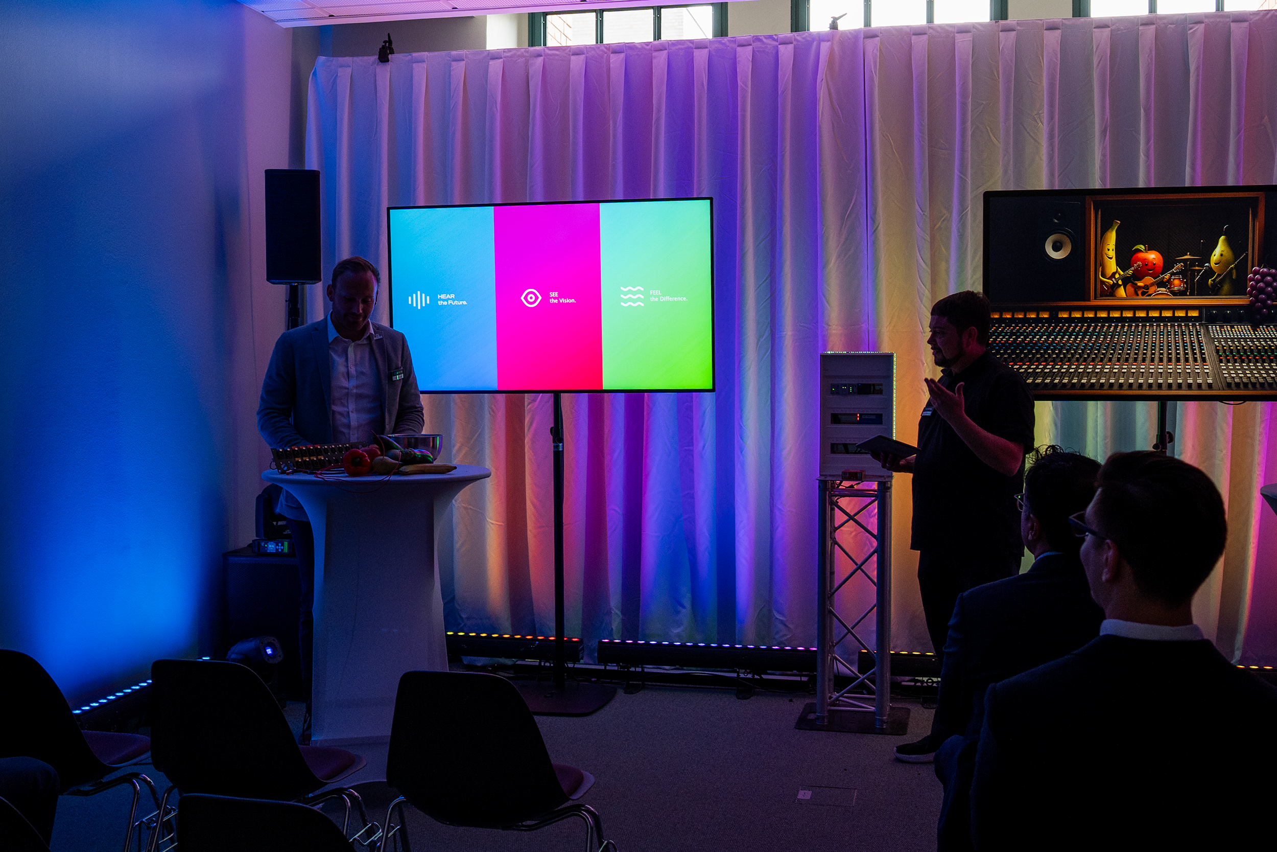 An unseren drei interaktiven Stationen HEAR the Future, SEE the Vision und FEEL the Difference erlebst Du, wie audiovisuelle Technologie die Zukunft formt.